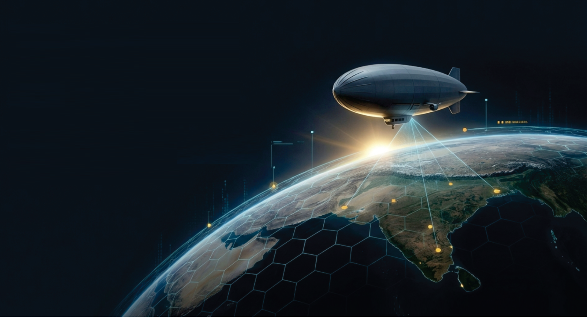 High-altitude pseudo-satellite (HAPS) airship at 18–22 km for persistent surveillance, resilient 5G/6G communications, and drone-swarm command-and-control.