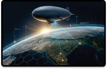 High-altitude pseudo-satellite (HAPS) airship at 18–22 km for persistent surveillance, resilient 5G/6G communications, and drone-swarm command-and-control.