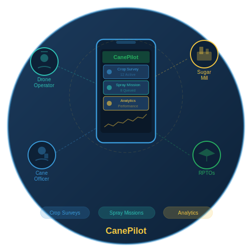 Technology-driven platform connecting trained drone operators with sugar mills, cane officers, and RPTOs. Facilitates crop surveys, spraying missions, and performance analytics.​