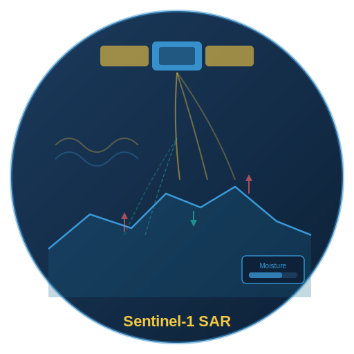 Synthetic Aperture Radar for all-weather surface deformation and moisture proxy detection.